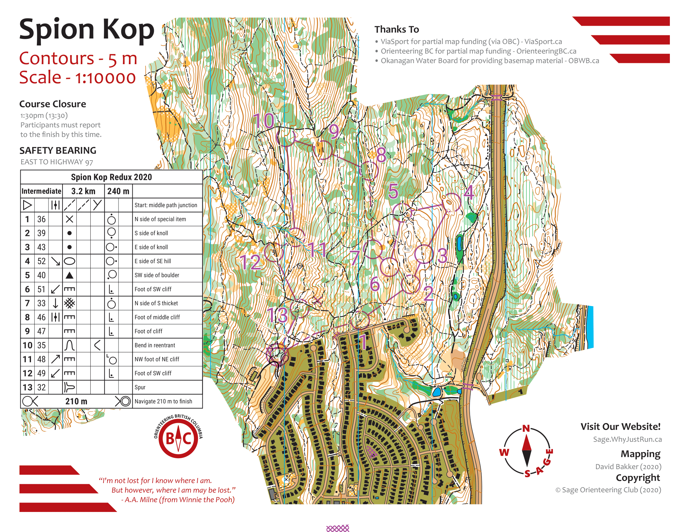 The event centre, registration and start/finish, is located at the Spion Kop Trails Upper Lakes Trailhead in The Lakes subdivision in Lake Country. This is about 15 minutes north of the Kelowna airport and 25 minutes south of the Vernon hospital.