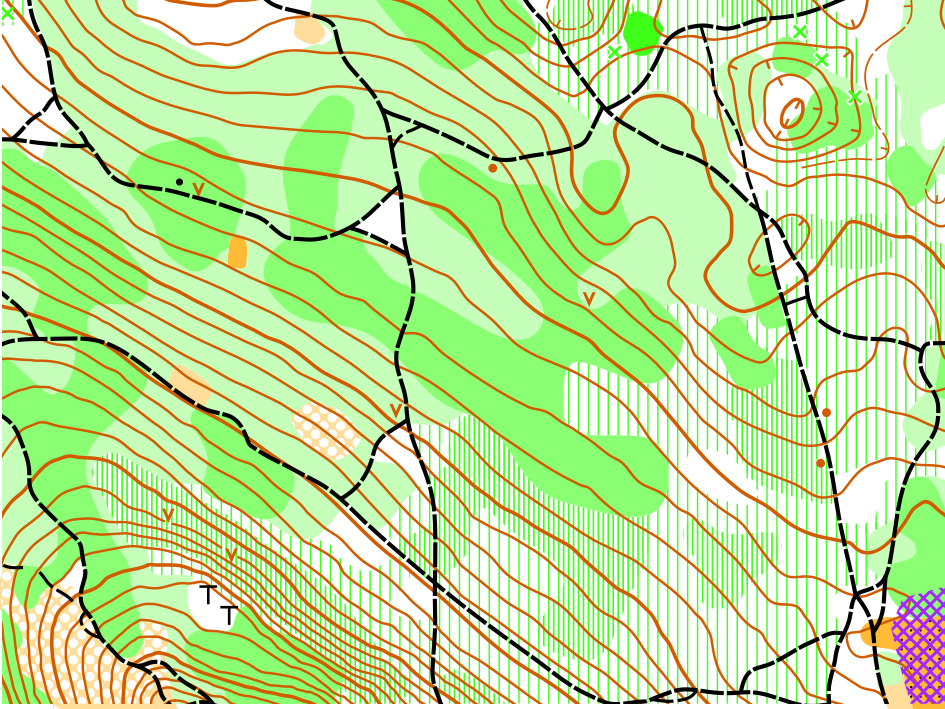 Created in OOMapper in 2015 by David Bakker, Jonathan Bakker, and Abbi May. Minor updates in 2017 by Brian May. Almost complete vegetation and trail remap in 2021 by David Bakker, along with some minor contour tweaks as well.
