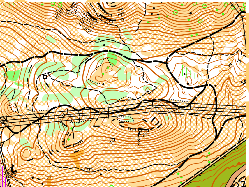 City of Kamloops base map using basemaps using LiDAR based contours, and 2016 ortho-retified imagery. Made by David Bakker in 2017 using rock and water features from the old map, but completely remapping everything else from scratch including trails, new subdivisions, vegetation etc. Map not yet finished on northern side of the mountain (2017). Map updated to ISOM2017-2 with some drafting improvements in already mapped areas in early 2021, but no map expansion.